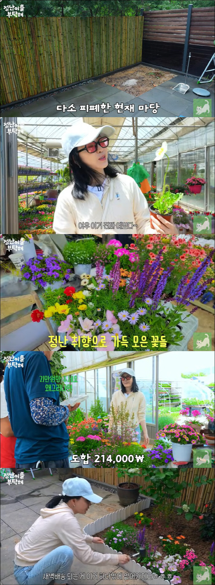 Kim Jeong-nam meticulously selected blooms that pose no threat to felines. Despite saying they're costly, Kim Jung-nam adds, “I just can’t bear the thought of those flowers.” The purchase was made spontaneously, driven purely by whim. In total, Kim Jung-nam expended 210,000 won solely for floral adornments. However, Kim Jung-nam remarks, “I wish I could acquire a slightly larger tree; we ought to have something substantial as an anchor. Perhaps planting additional flowers beneath this tree would create better harmony.” Additionally, a sizable wooden tub was acquired.